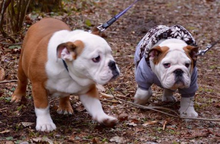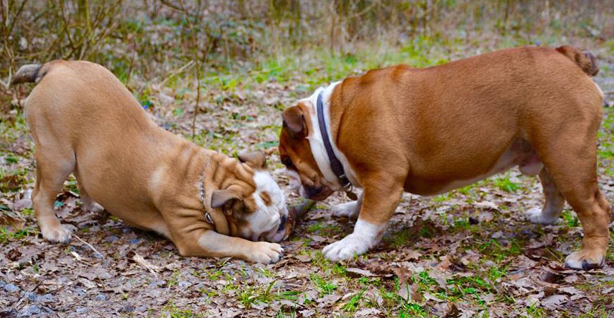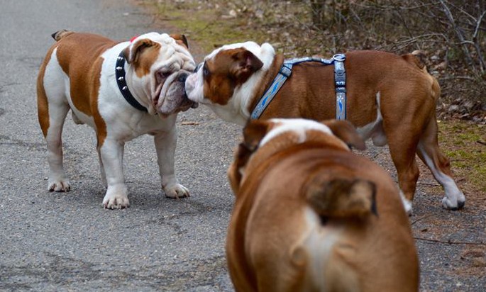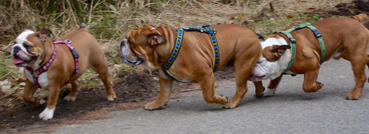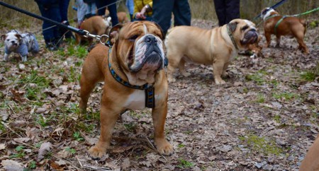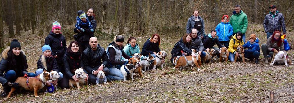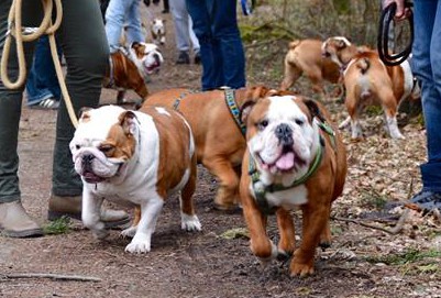 Účast buldoků na společných vycházkách má vzrůstající tendenci - tentokrát bylo 13 anglických buldoků + francouzský buldoček + teriérka.