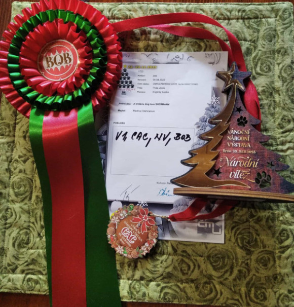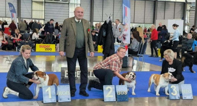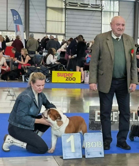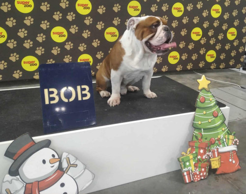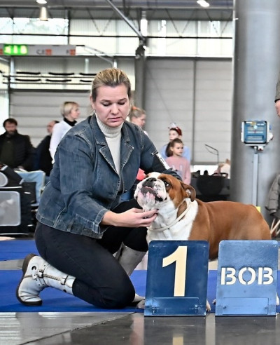 Jelikož nás pan Řehánek posuzoval už na Klubovce MSBMK a Shermy se mu líbil, rozhodla jsem se ho přihlásit i do Brna na národku. No a nejen, že Shermy dostal CAC a následně i Národního vítěze, ale nakonec byl titulem BOB vyhlášen nejlepším anglickým buldokem :-)